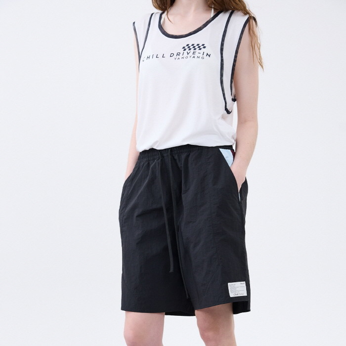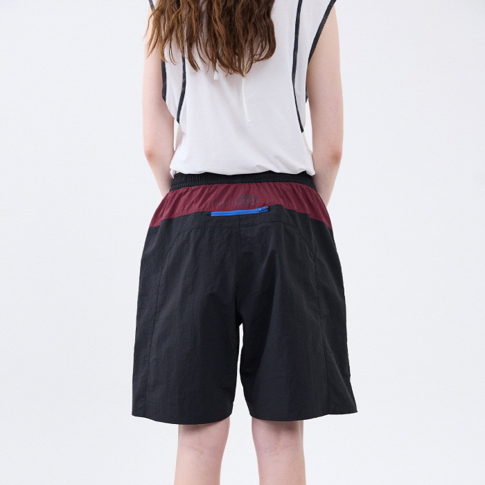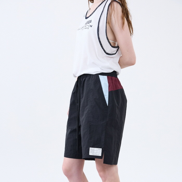 NYLON 소재를 사용한 컬러블럭 유니섹스 하프팬츠입니다.