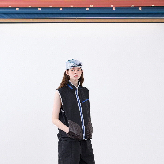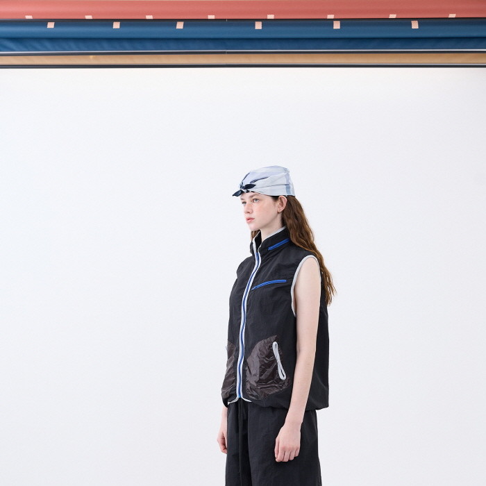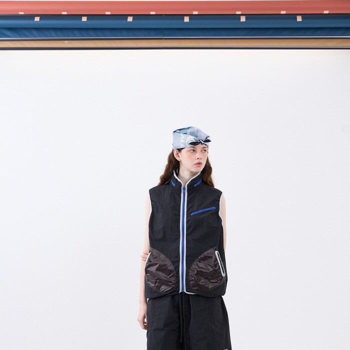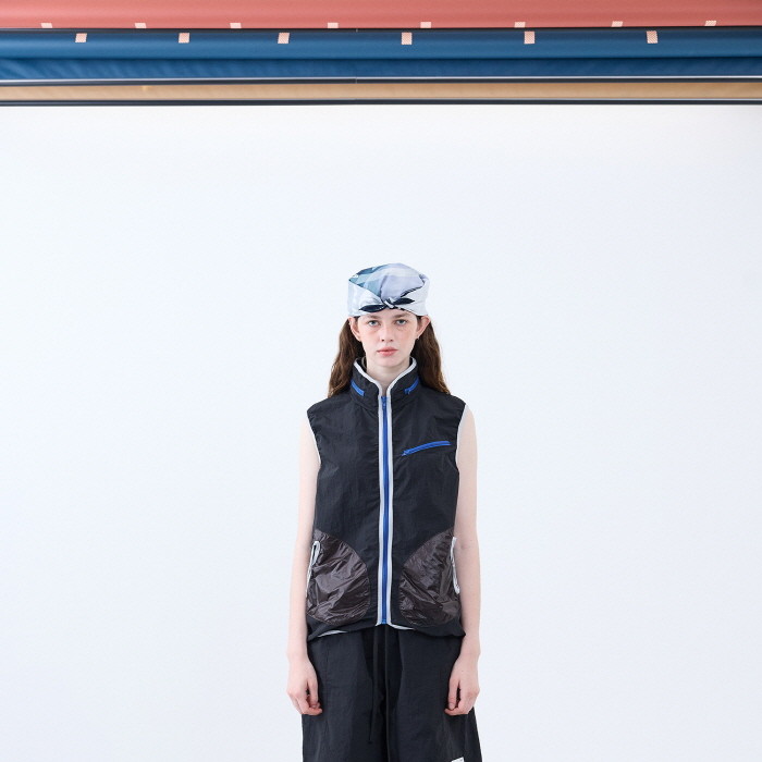 나일론 소재로 제작한 히든 후드 베스트입니다.