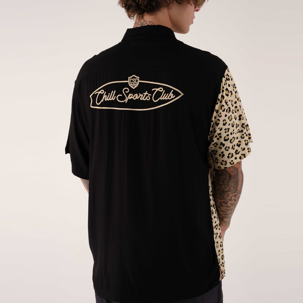 블랙과 칠스포츠클럽의 독창적인 레오파드 스킨 패턴으로 칠스포츠클럽만의 감성으로 디자인하여 제작된 하와이안 셔츠입니다.