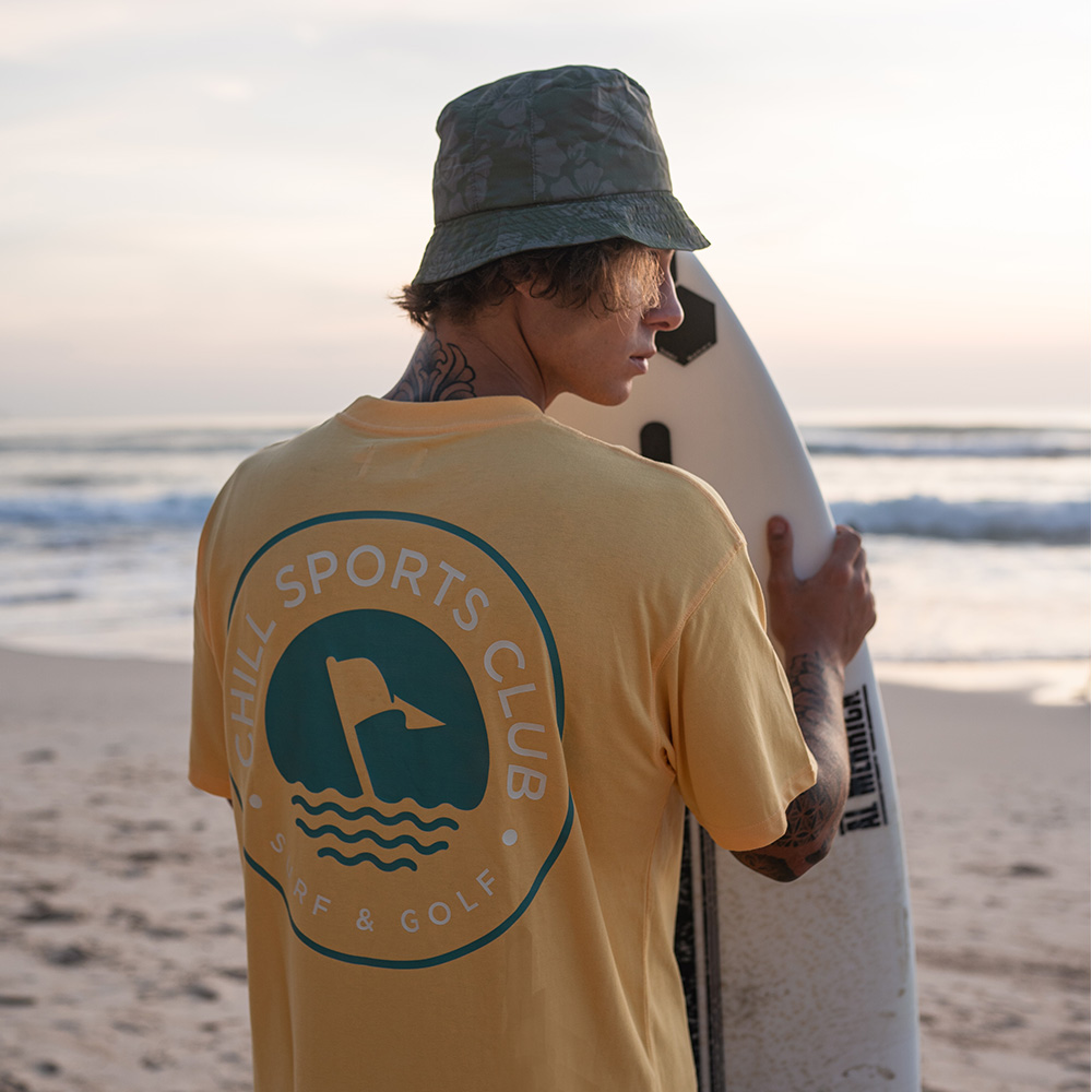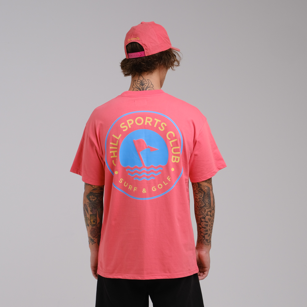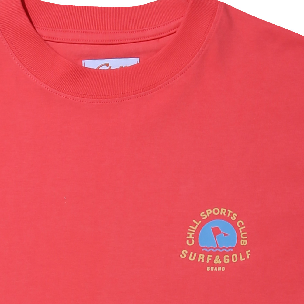 CHILL SPORTS CLUB의 모티브인 SURF/GOLF에서 영감을 얻은 깃발을 디자인하여 제작된 티셔츠입니다.