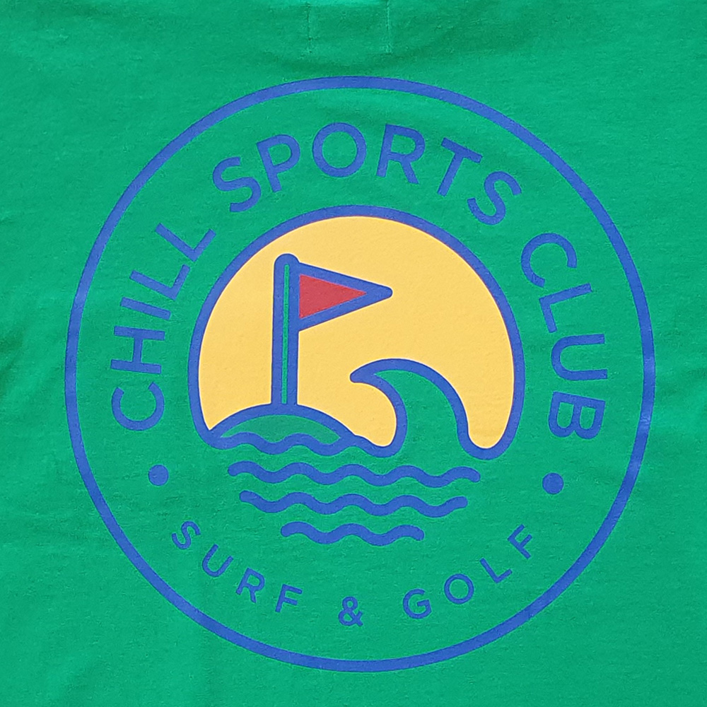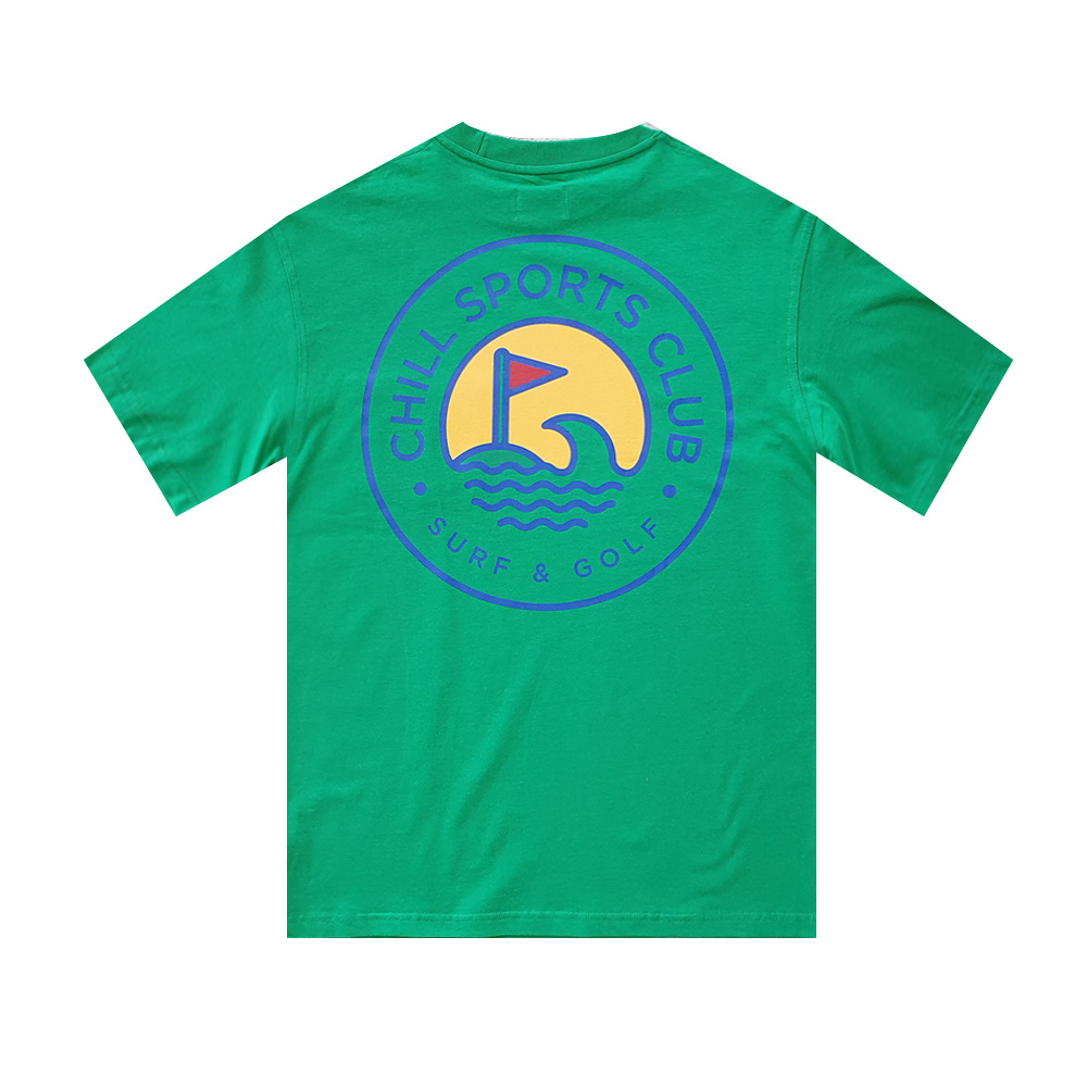 CHILL SPORTS CLUB의 모티브인 SURF/GOLF에서 영감을 얻은 깃발을 디자인하여 제작된 티셔츠입니다.