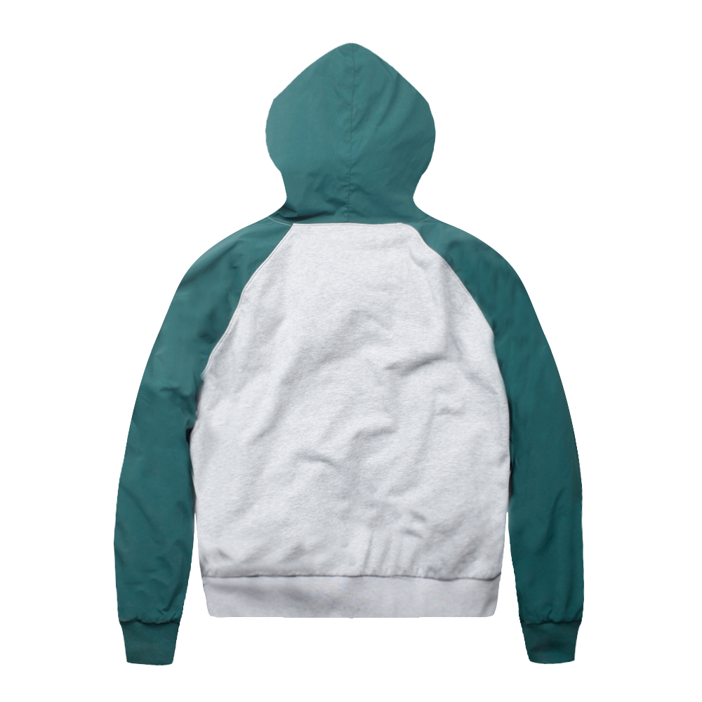 팔과 후드 부분은 스판 나일론을 사용하여 활동성을 극대화 하였으며,가벼운 프리미엄 라이트 코튼을 바디에 활용하여