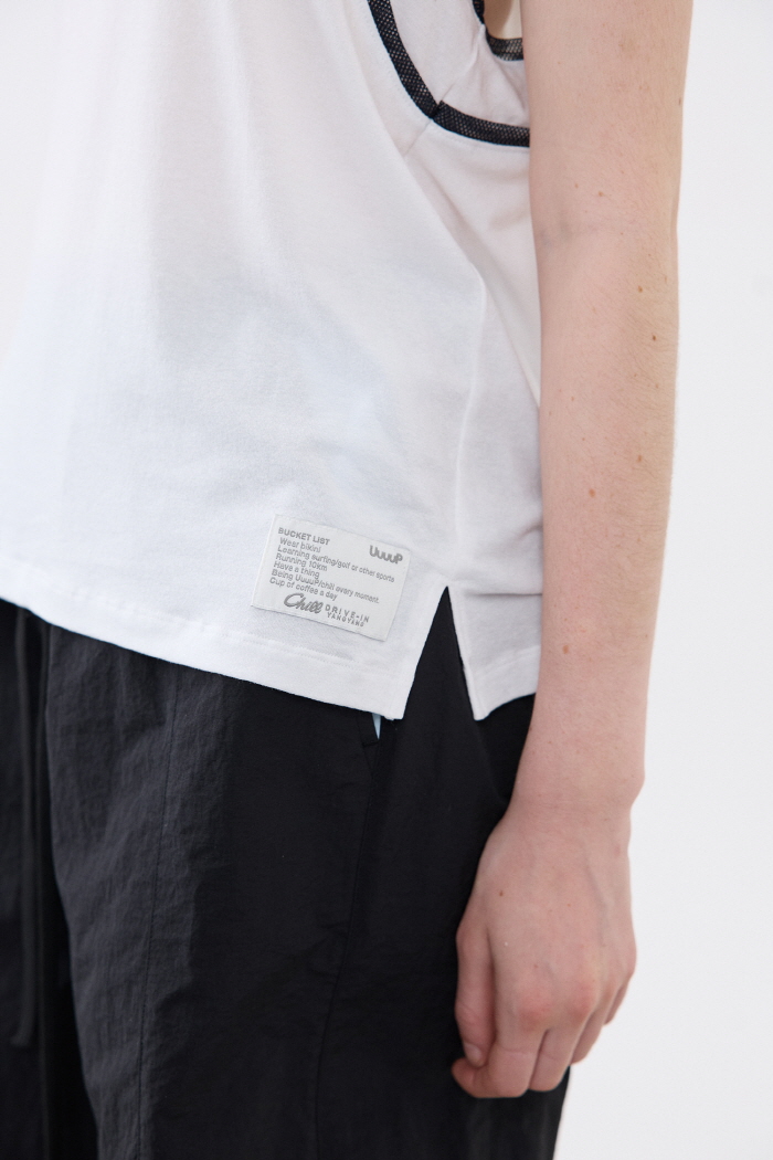 스판이 있는 텐셀 코튼 혼용원단을 사용한 포인트 메쉬 슬리브리스입니다.