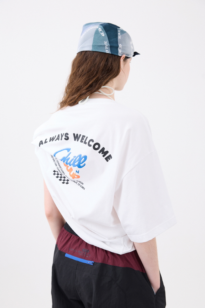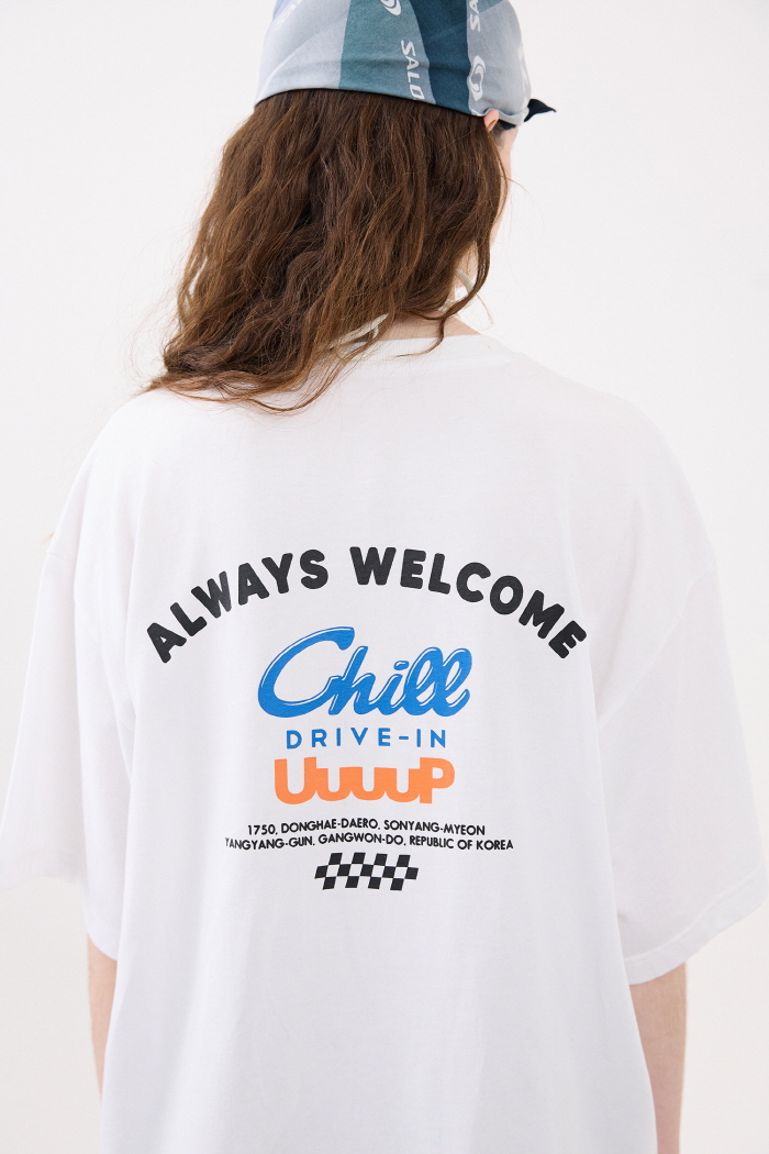 칠드라이브의 자유로운 분위기를 담은 유니섹스 티셔츠로 남녀 모두 착용 가능합니다.