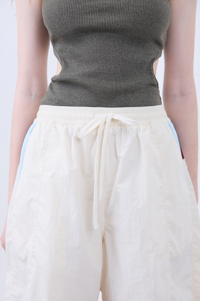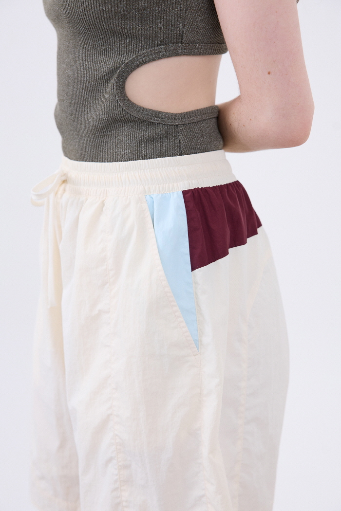 NYLON 소재를 사용한 컬러블럭 유니섹스 하프팬츠입니다.