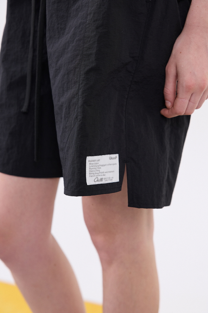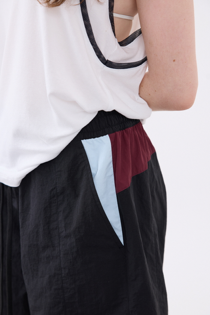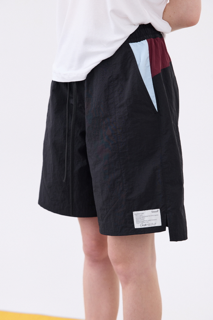 NYLON 소재를 사용한 컬러블럭 유니섹스 하프팬츠입니다.