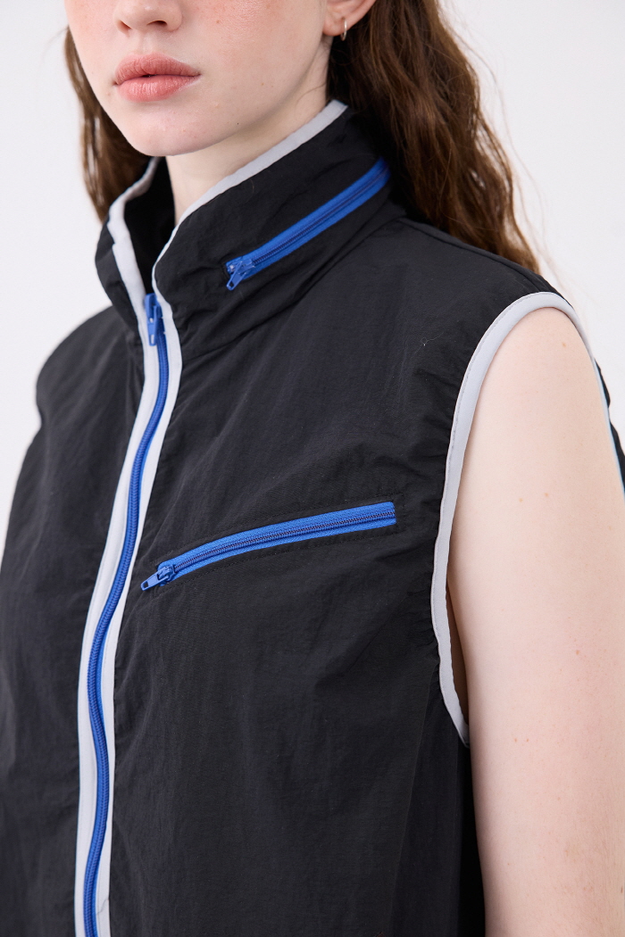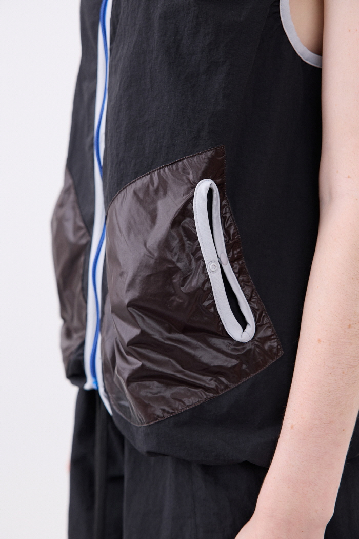 나일론 소재로 제작한 히든 후드 베스트입니다.