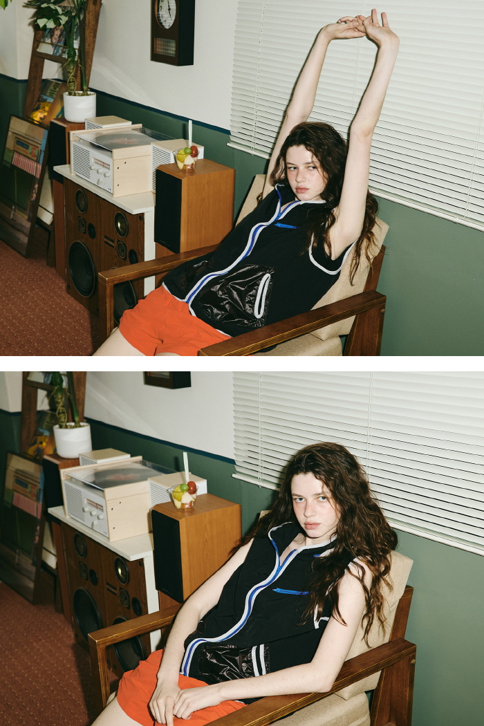 포켓과 숨어있는 후드, 나일론 지퍼의 배색으로 청량감을 더하는 아이템입니다.